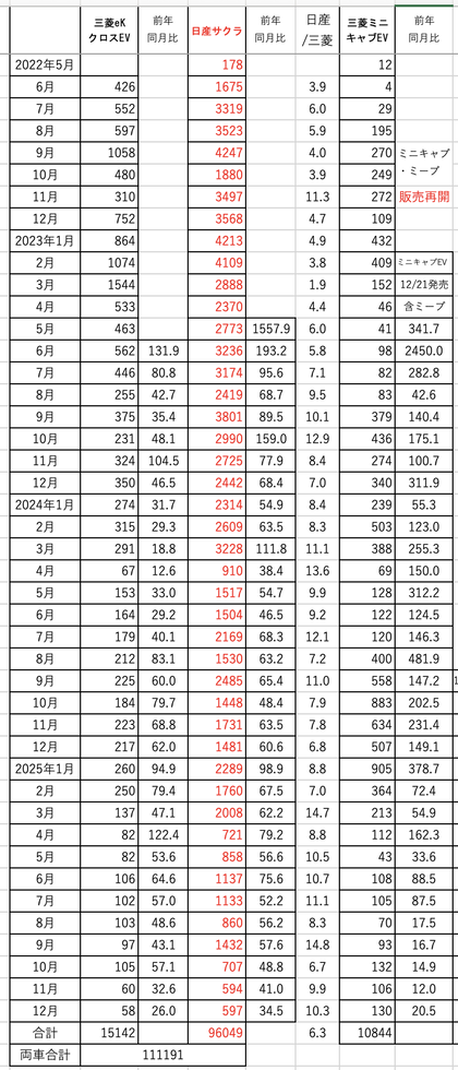 日産・三菱軽EVの販売台数 2022年5月〜2025年12月